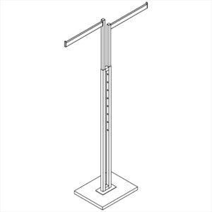 1″ SQ. TUBE 2-WAY W/RECTANGULAR STRAIGHT ARMS; 2- 16 1/2″ x 1 1/2″; 12″ x 15″ BASE