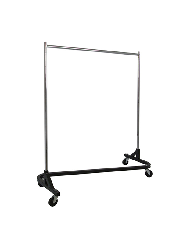 • SQ. TUBING SINGLE HANGRAIL ROLLING RACK• 60" HANGRAIL x 20"(W)• 1 1/4" ROUND TUBING HANGRAIL