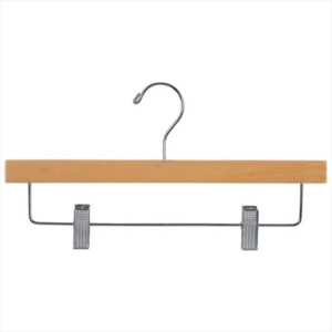 14″ WOOD (NATURAL) PANTS HANGER; SWIVEL HOOK (SUPER HEAVY WEIGHT)