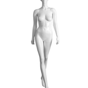 ARMS TO SIDE, RIGHT LEG CROSSED OVER 5’9″(H), 34″(C), 25″(W), 36″(H), GLOSSY WHITE, ROUND CHROME BASE