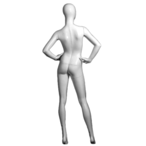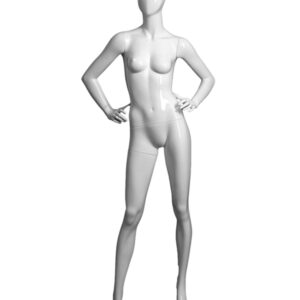 RIGHT ARM BENT, LEFT LEG FORWARD, 5’8″(H), 33″(C), 24″(W), 34″(H), GLOSSY WHITE, ROUND CHROME BASE