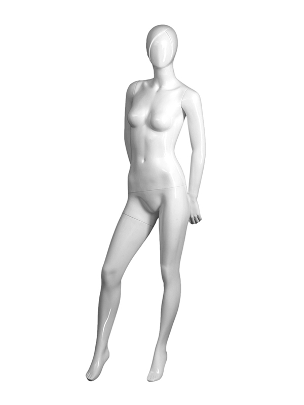 • FEMALE HEADLESS PLUS SIZE, ARMS TO SIDE, LEGS APART, 5'9"(H), 43"(C), 25"(W), 36"(H), MATTE WHITE, ROUND CHROME BASE