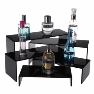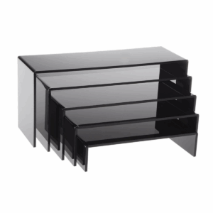 U-SHAPED RISER; SET OF 5; 1ST: 13″L x 4 1/2″W x 6″H; 2ND: 12″L x 4 1/2″W x 5″H; 3RD: 11″L x 4 1/2″W x 4″H; 4TH: 10″L x 4 1/2″W x 3″H; 5TH: 9″L x 4 1/2″W x 2″H