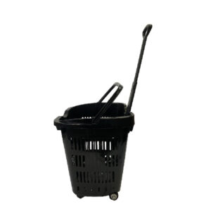2 WHEELS ROLLING SHOPPING BASKET” 19 1/2″ x 16 1/4″ x 18 3/4″; CONVENIENT TELESCOPING HANDLE & EASY CARRY HANDLE; 2″ CASTERS; RED