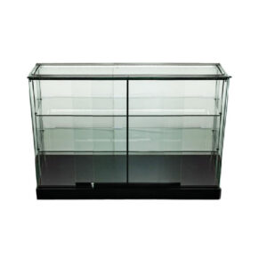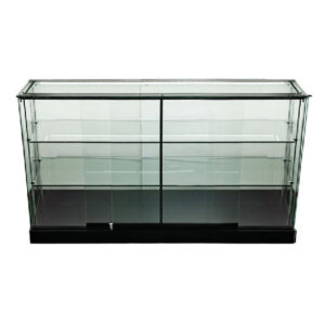 FRAMELESS TEMPERED GLASS STANDARD CASE WITH LED LIGHT; LED LIGHT AROUND THE TOP INCLUDED – TWO GLASS SHELVES; 3″KICK BASE; PLUNGER LOCK INCLUDED