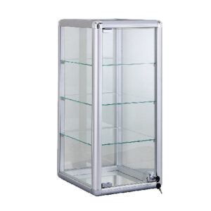 COUNTER TOP GLASS SHOWCASE; 14″(L) x 12″(W) x 27″(H); W/3 SHELVESÂ ;LOCK AND KEYS