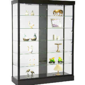 GLASS TROPHY CASE; 60″L x 19 3/4″D x 80″H; GLASS HEIGHT : 71″; TOP CANOPY : 3 1/2″; KICK BASE  : 5″; 10 ADJUSTABLE 1/5″T GLASS SHELVES : 28 2/5″ x 17 2/5″; LED TOP AND SIDE LIGHTS